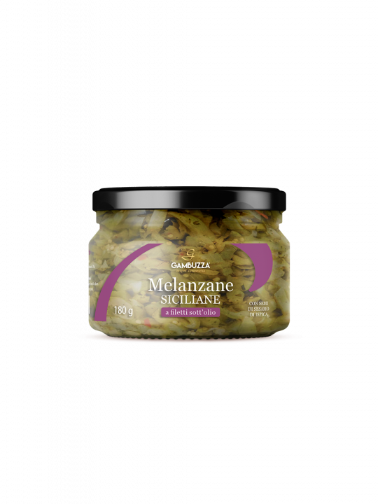 I filetti di melanzane sott’olio sono un’autentica specialità siciliana. Le melanzane, di nostra produzione, vengono affettate a filetti e conservate in olio insieme a erbe aromatiche e spezie tipiche della tradizione isolana, come aglio, menta, peperoncino e sesamo di Ispica. Ogni filetto è un concentrato di sapori mediterranei, ideale per arricchire antipasti, piatti principali o “apertivi”, e per vivere un’esperienza autentica e genuina.
