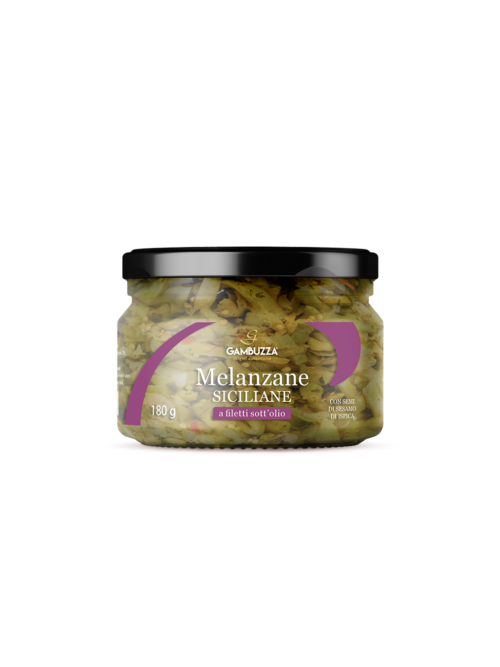 INGREDIENTI: Melanzane 67%, olio di semi di girasole 33%, capperi, menta, aglio, peperoncino, semi di sesamo di Ispica, aceto di vino. Contiene solfiti.