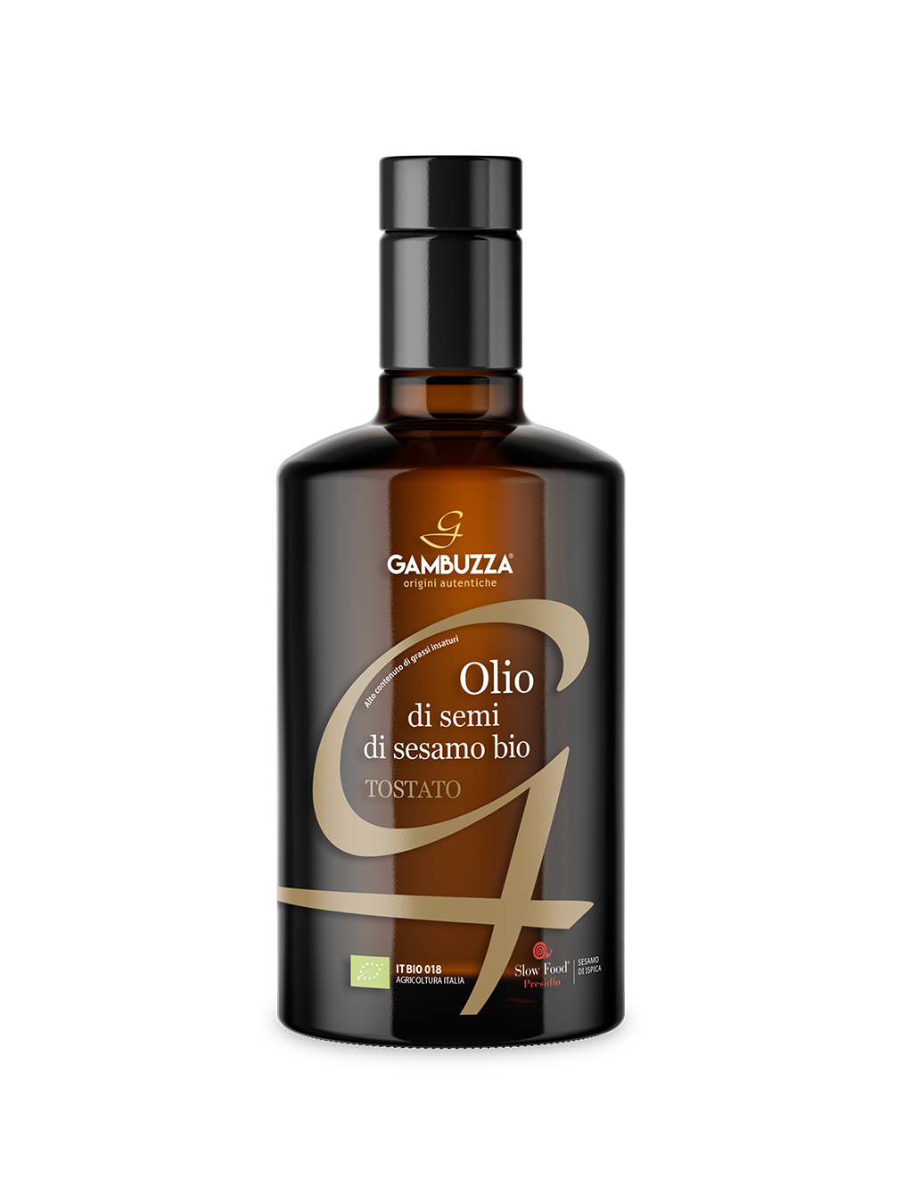 Ogni bottiglia è frutto di un processo artigianale che rispetta le tecniche tradizionali, per garantire un prodotto sano, naturale e dal gusto inconfondibile. Estratto da semi di sesamo di Ispica, selezionati e delicatamente tostati, questo olio possiede un gusto intenso e avvolgente, perfetto per arricchire i tuoi piatti con un tocco unico e autentico, ideale per condire insalate e verdure grigliate, ma anche per dare un sapore particolare a salse e zuppe.