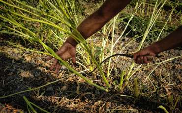 Con una falce in mano, come da tradizione, procediamo alla mietitura del nostro sesamo. Gambuzza, origini autentiche.